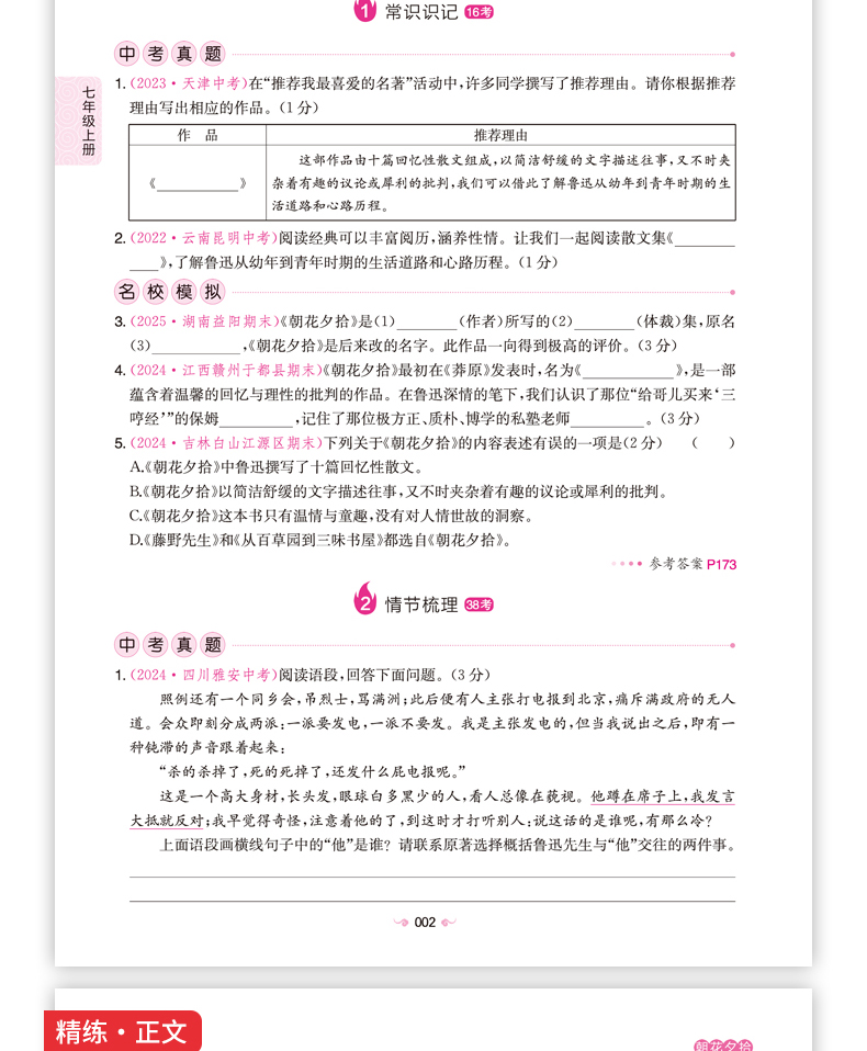 一本初中语文名著考点速记精练七八年级课内外名著导读基础知识点朝花夕拾西游记经典常谈红星照耀初一二三中考语文名著专项训练
