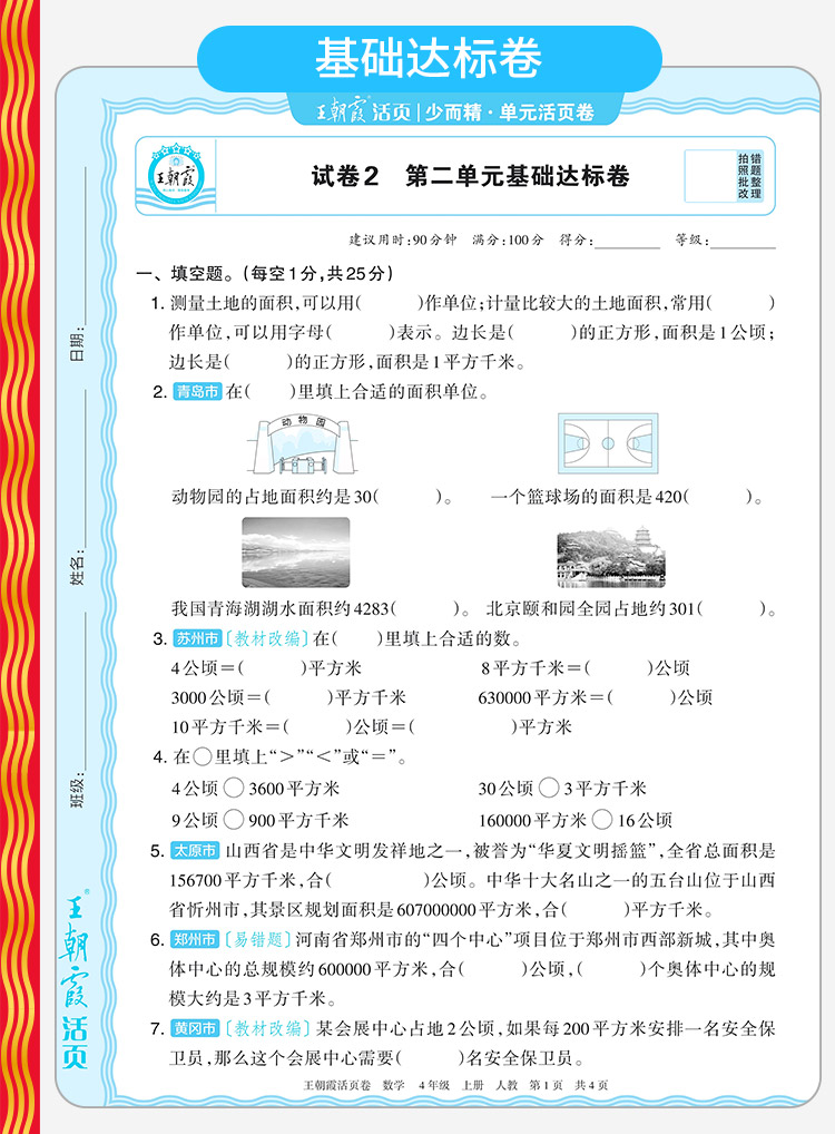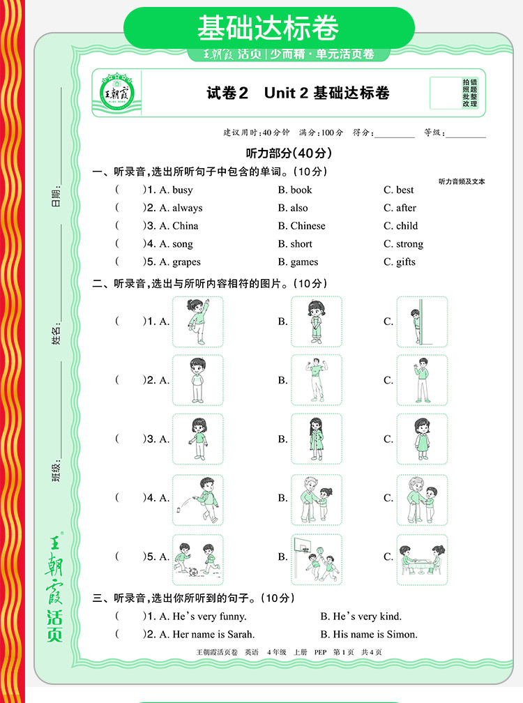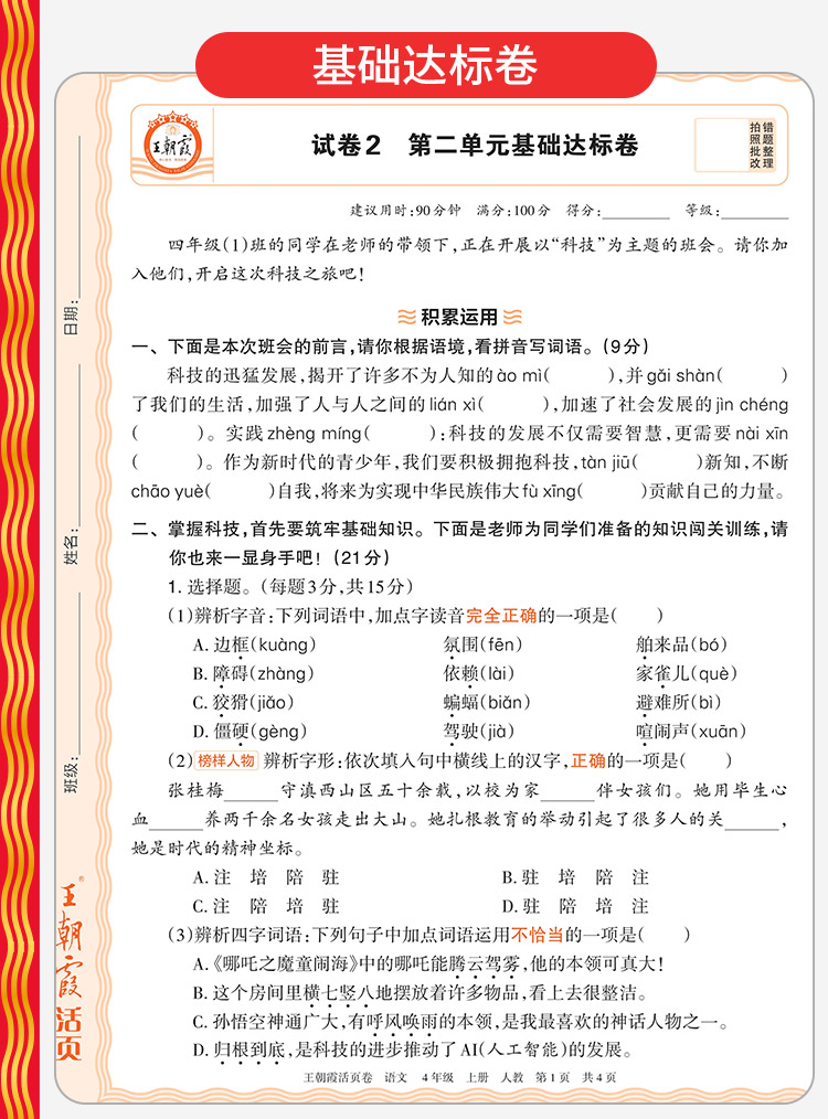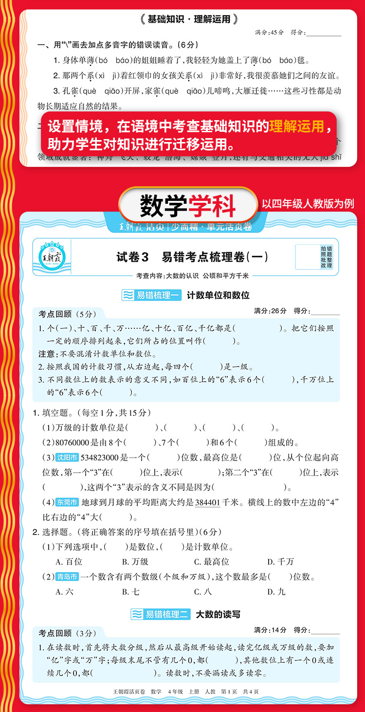 王朝霞活页单元卷、单元试卷测试卷、全套、期末冲刺卷、衔接练习