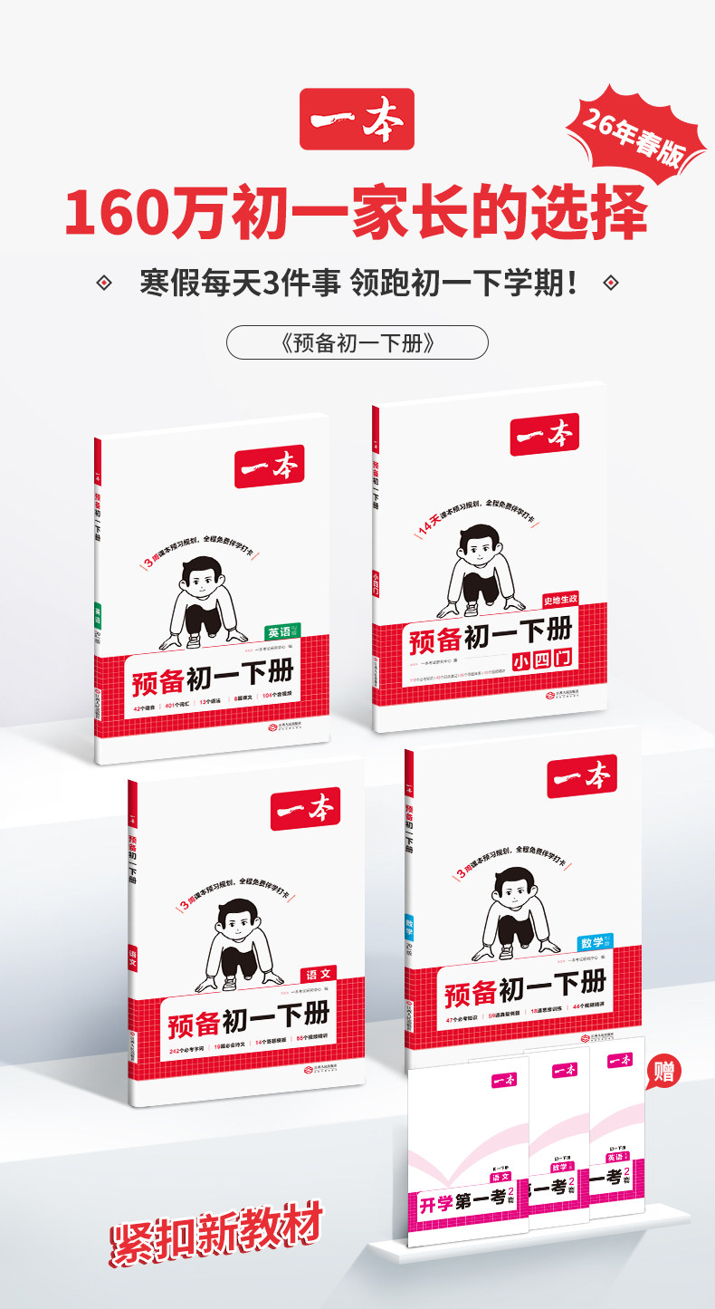 2026春一本预备初一初二七八年级下册语文数学英语物理人教版预习笔记一本官方旗舰店正品初中语文数学英语必刷练习题初中教辅书