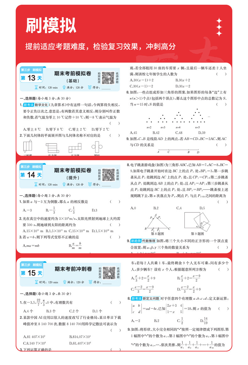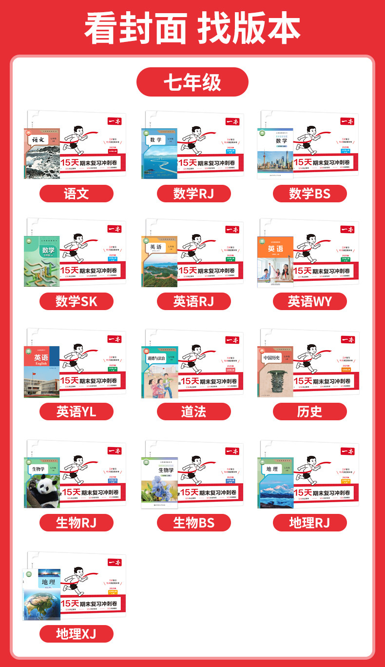 一本七八年级上册15天期末考前冲刺初中上分卷期末复习冲刺卷一本旗舰店初中数学语文英语地理生物物理同步测试期末综合单元试卷