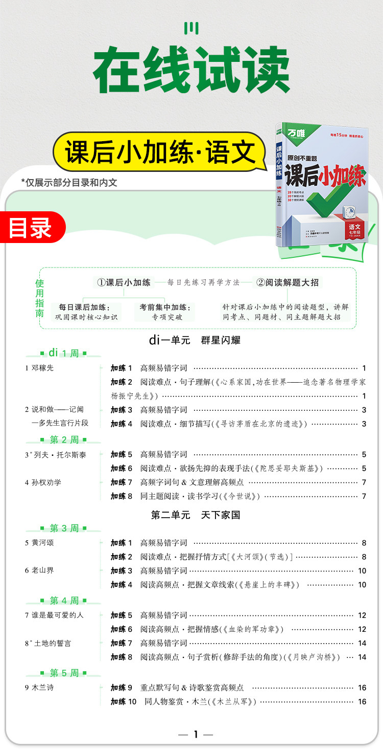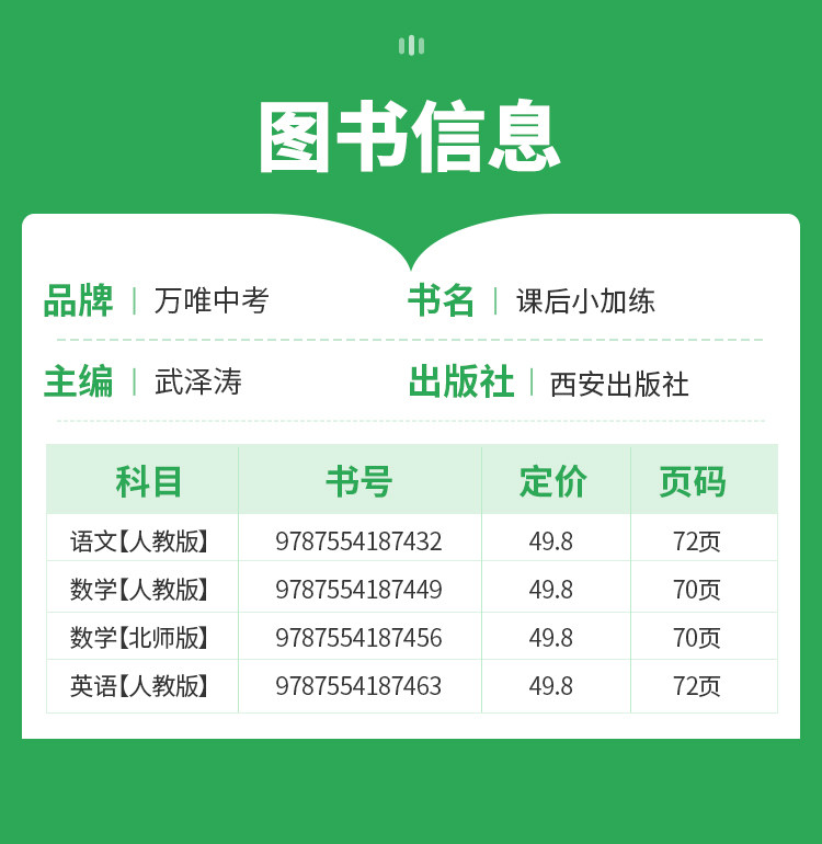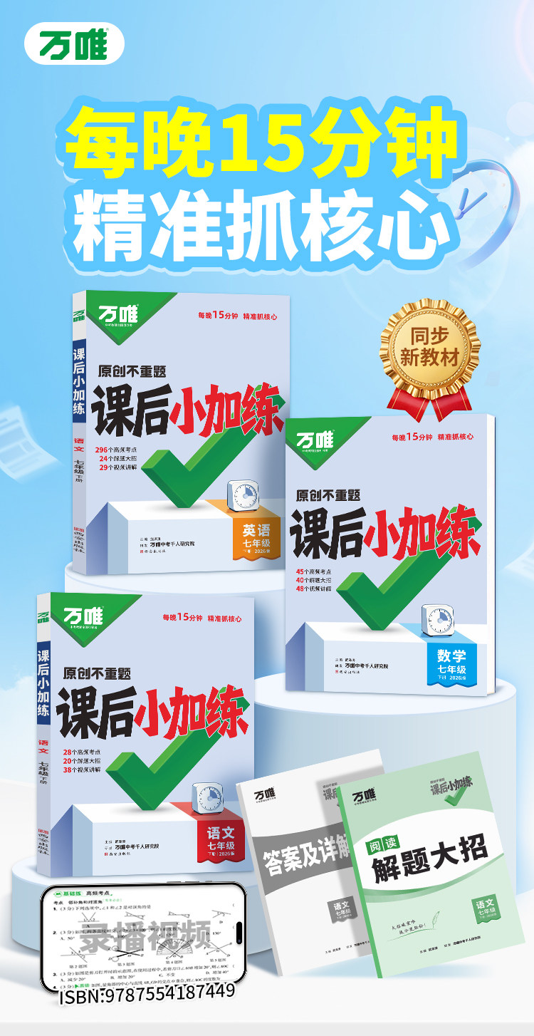 2026万唯中考、课后小加练、七年级下册、同步练习册、复习资料、万维教育