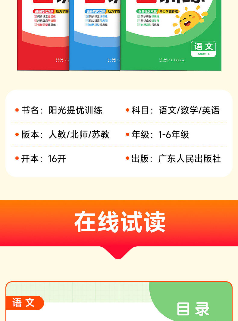 2026春、阳光同学、课时提优训练、1 - 6年级、同步练习册、人教版