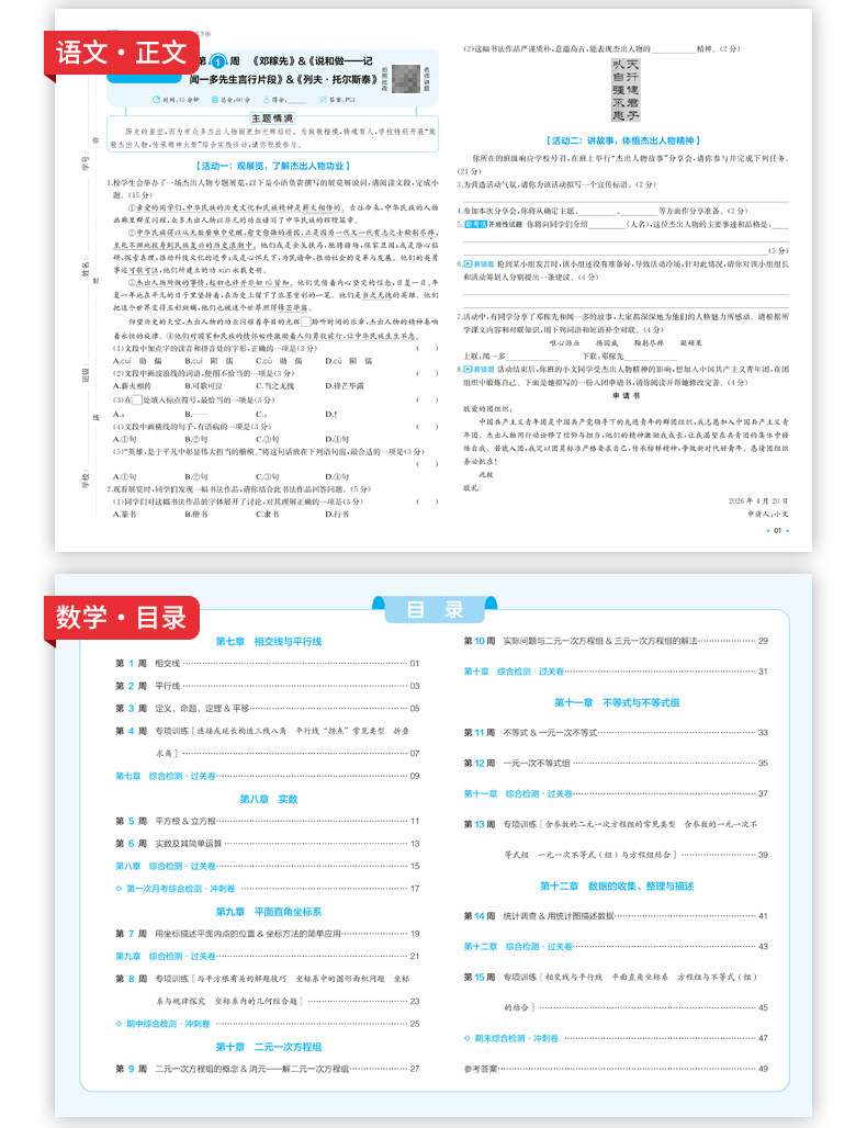 七年级下册、八年级下册、周末小测卷、初中同步测试卷、课后作业、考试卷