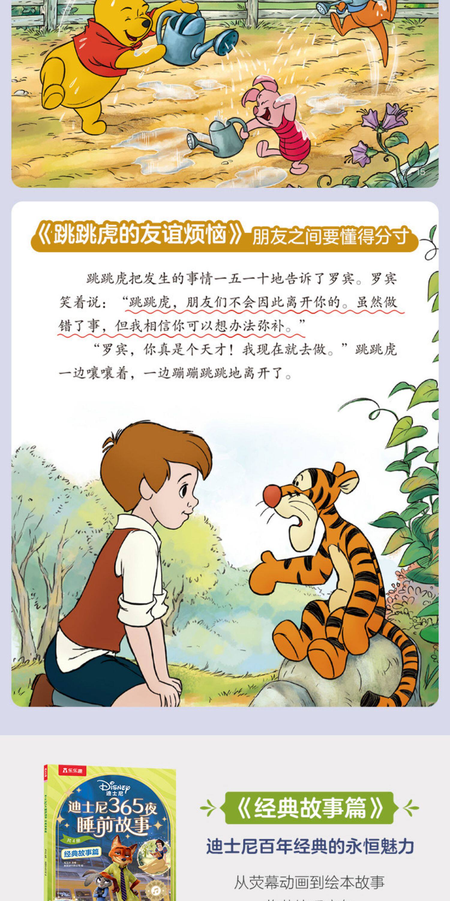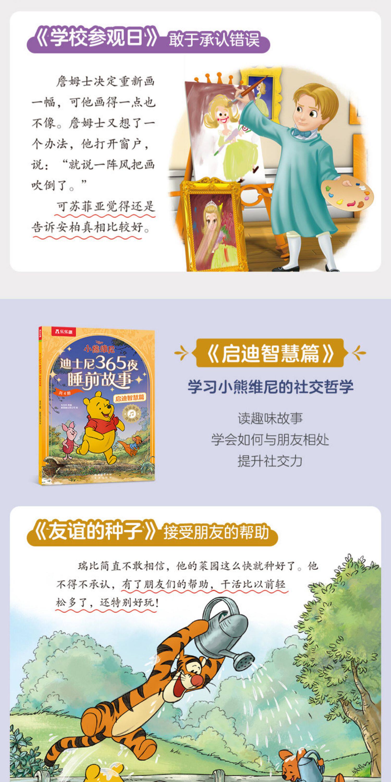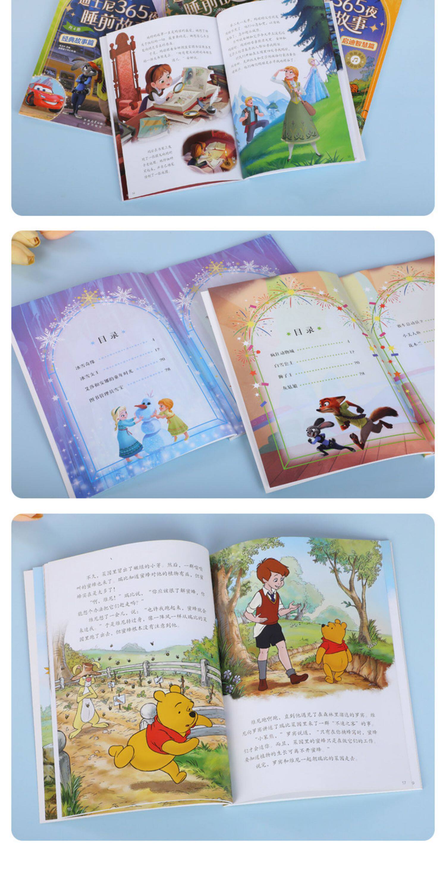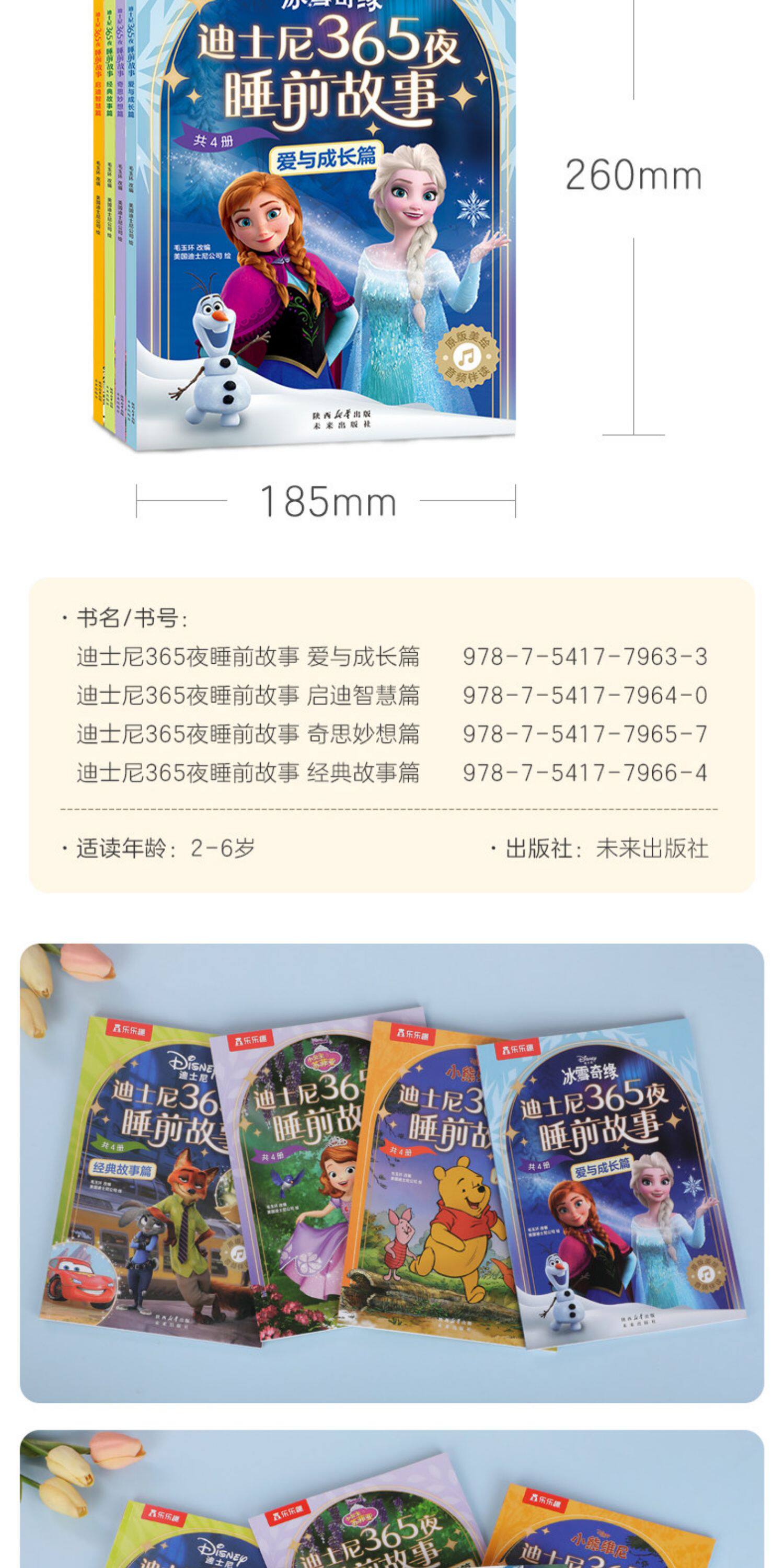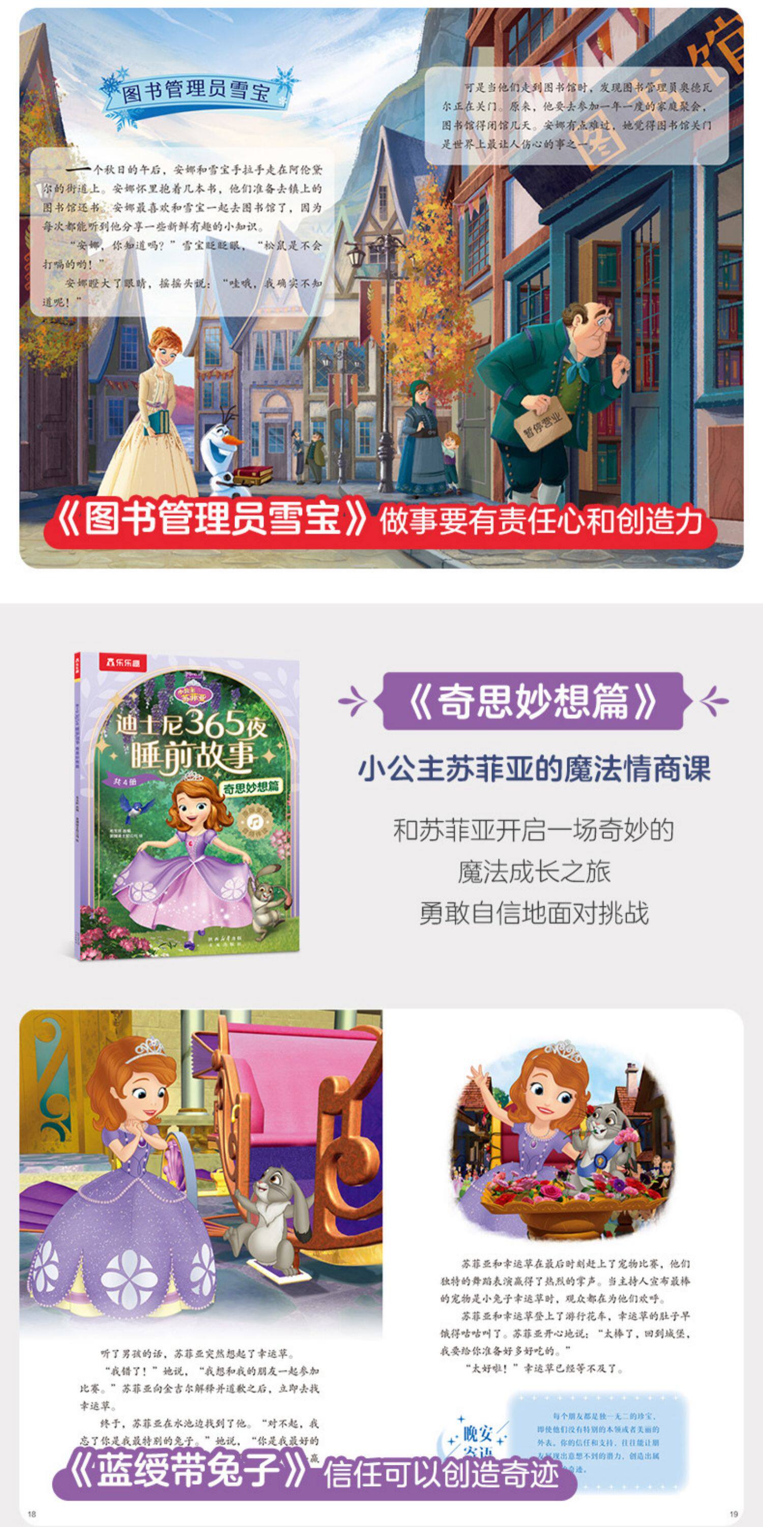 乐乐趣迪士尼 365夜动画电影故事绘本4册2-6岁幼儿亲子绘本冰雪奇缘艾莎公主疯狂动物城小公主苏菲亚小熊维尼童话故事书Q