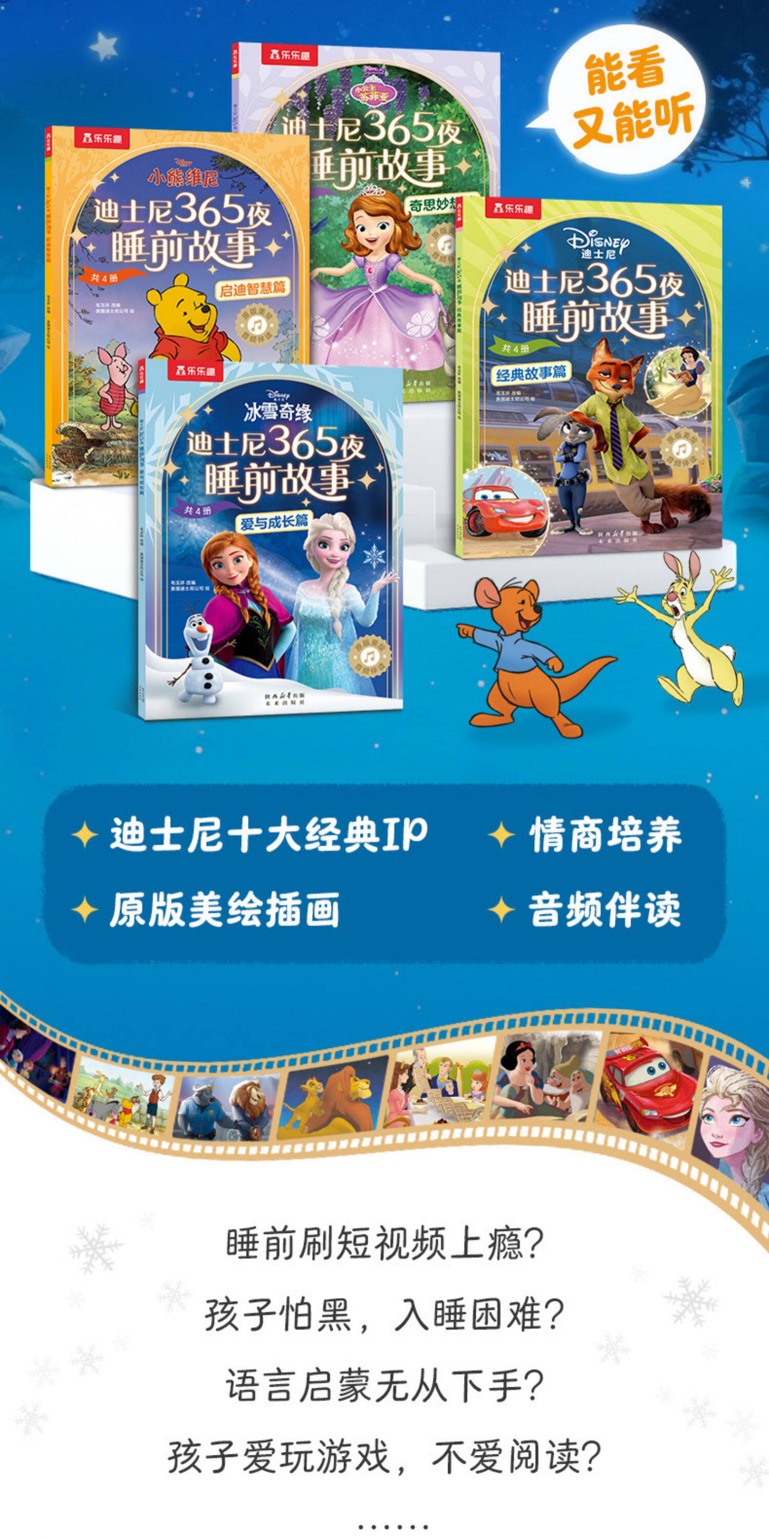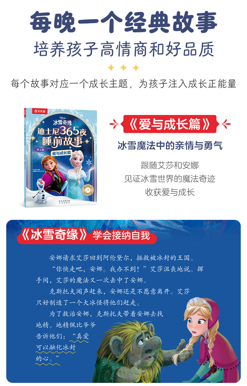 乐乐趣、迪士尼、365夜动画电影故事绘本、幼儿亲子绘本、童话故事书、艾莎公主