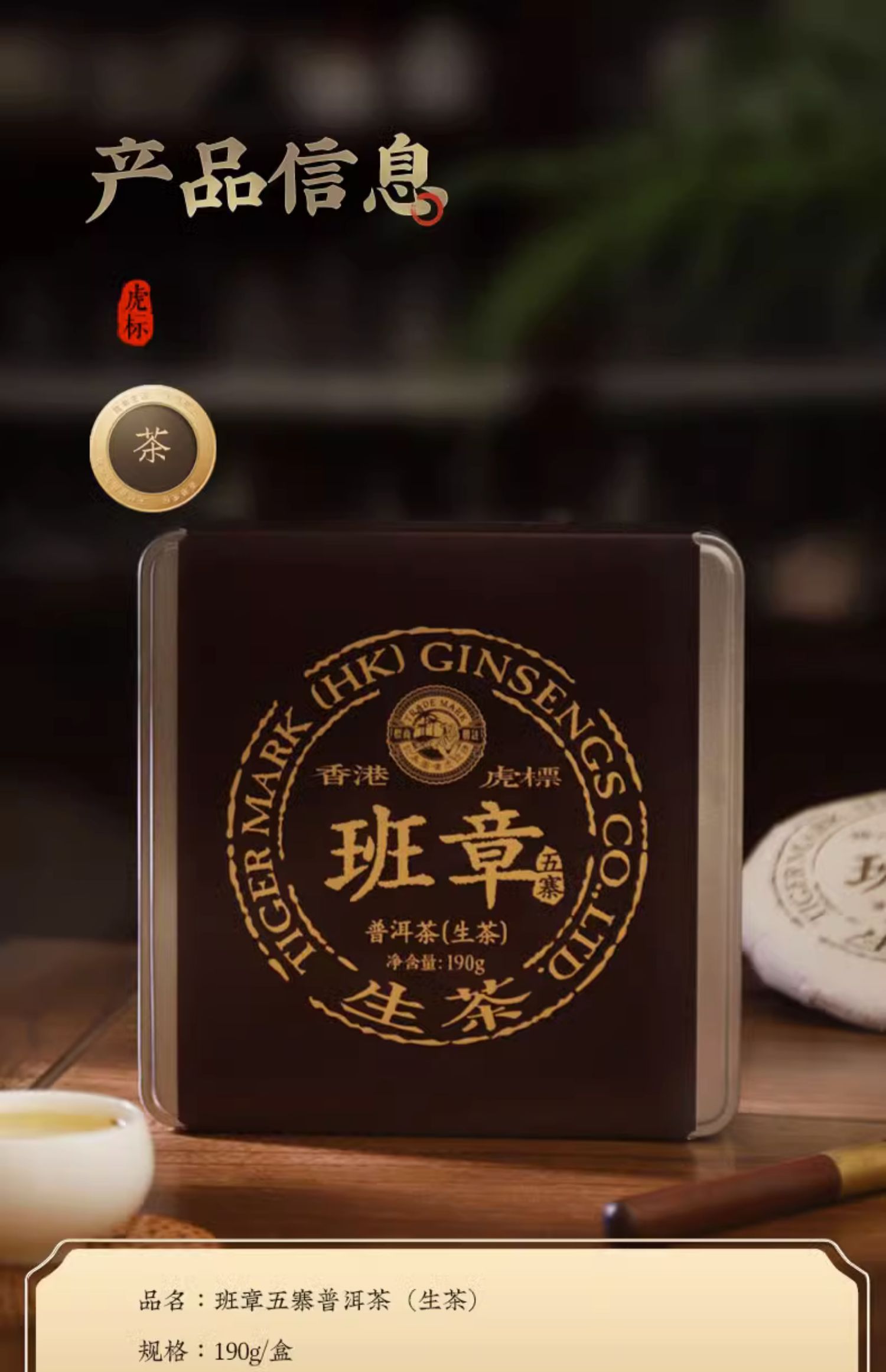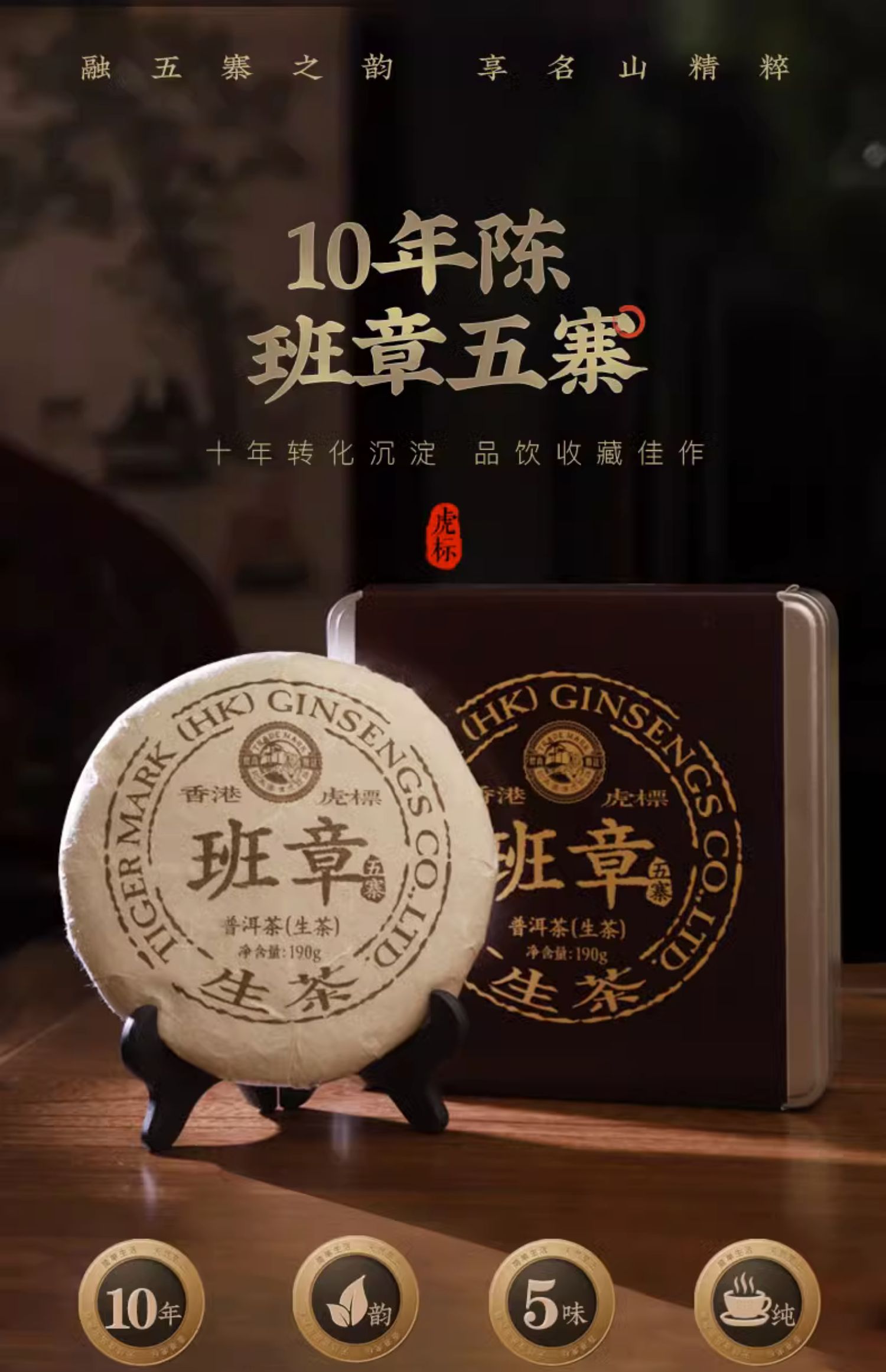 虎标、班章五寨、普洱生茶、布朗山产区、10年陈、云南、礼盒装