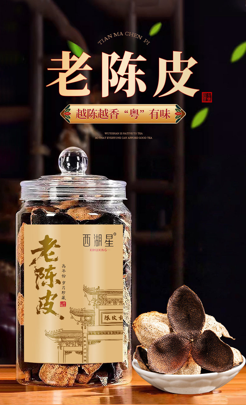 西湖星茶叶、天马陈老陈皮、高年份陈化、广东特产、陈皮干、礼盒装
