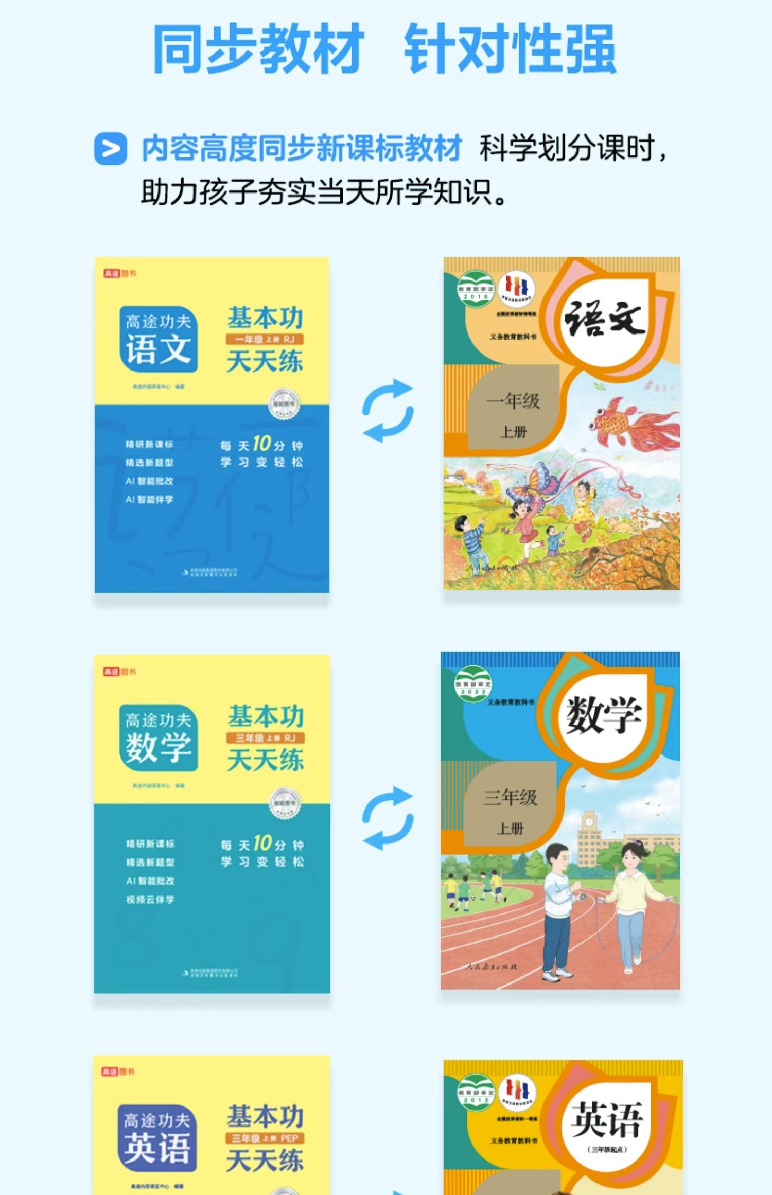 高途图书高途功夫语文英语数学基本功天天练三四五六年级上册人教版同步练习书AI智能听写拍照批改基础提升天天练数学提分宝典