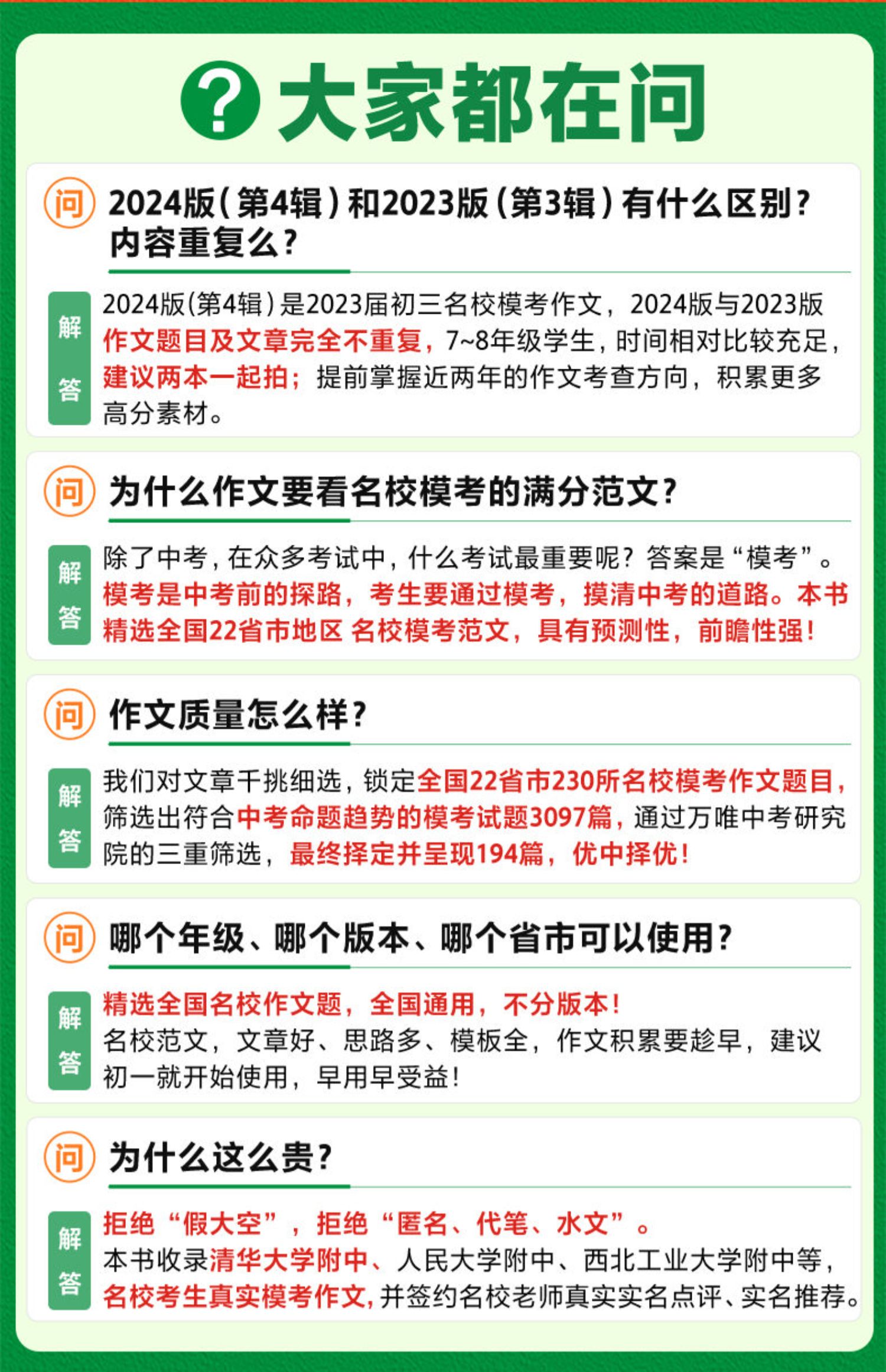 2024 新版 万唯 中考满分作文 初中 作文素材 模板范文精选 专项训练 写作技巧 万维教育