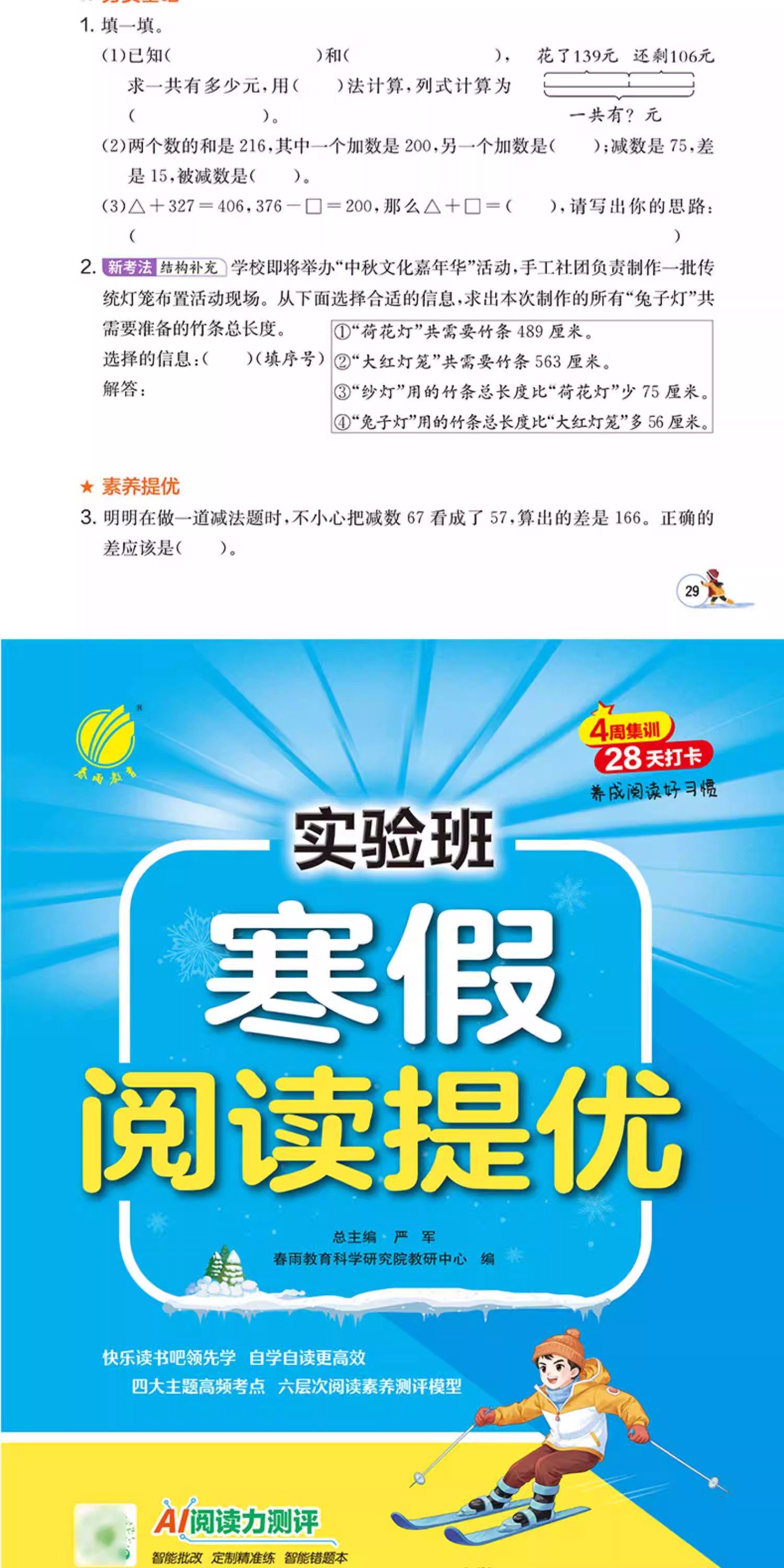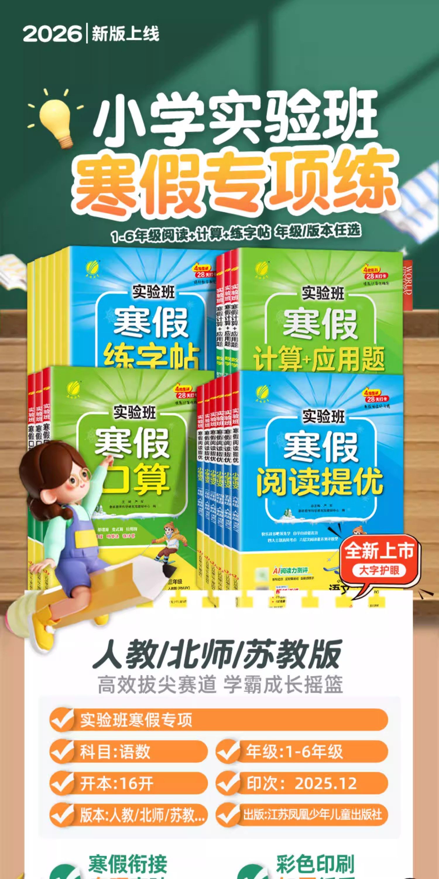 2026新版、春雨实验班、寒假衔接、专项提优、4周集训、小学各年级、语文数学衔接教材