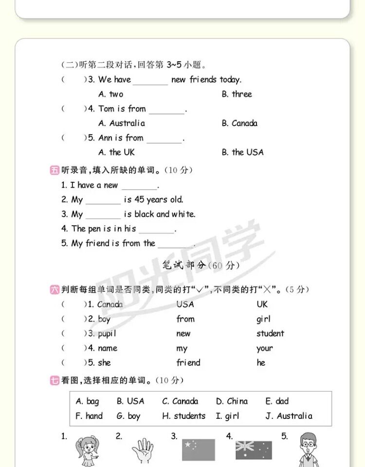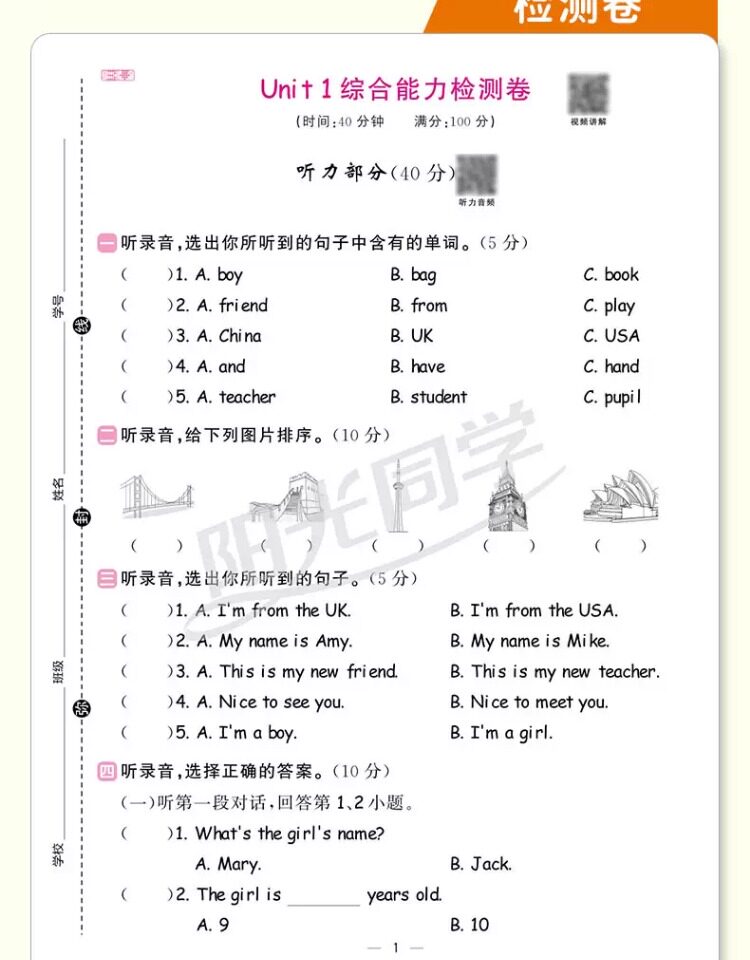 2026春 阳光同学 课时提优训练 同步练习册 测试卷