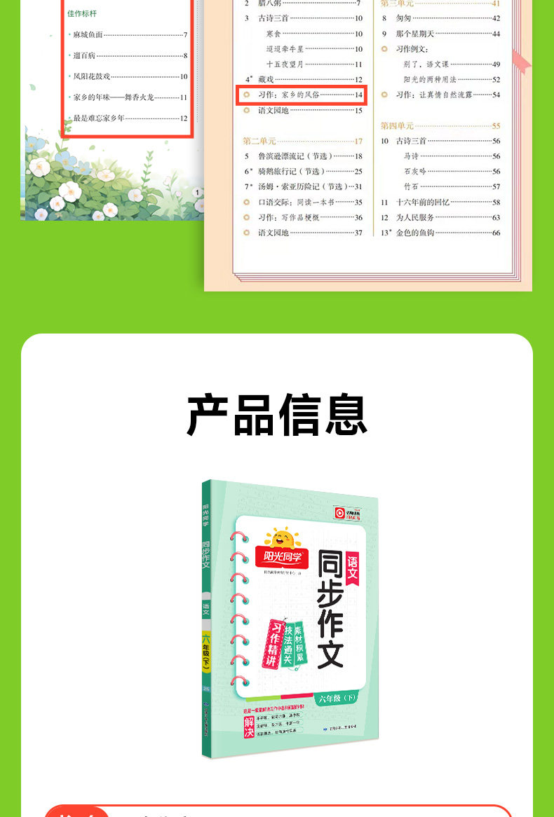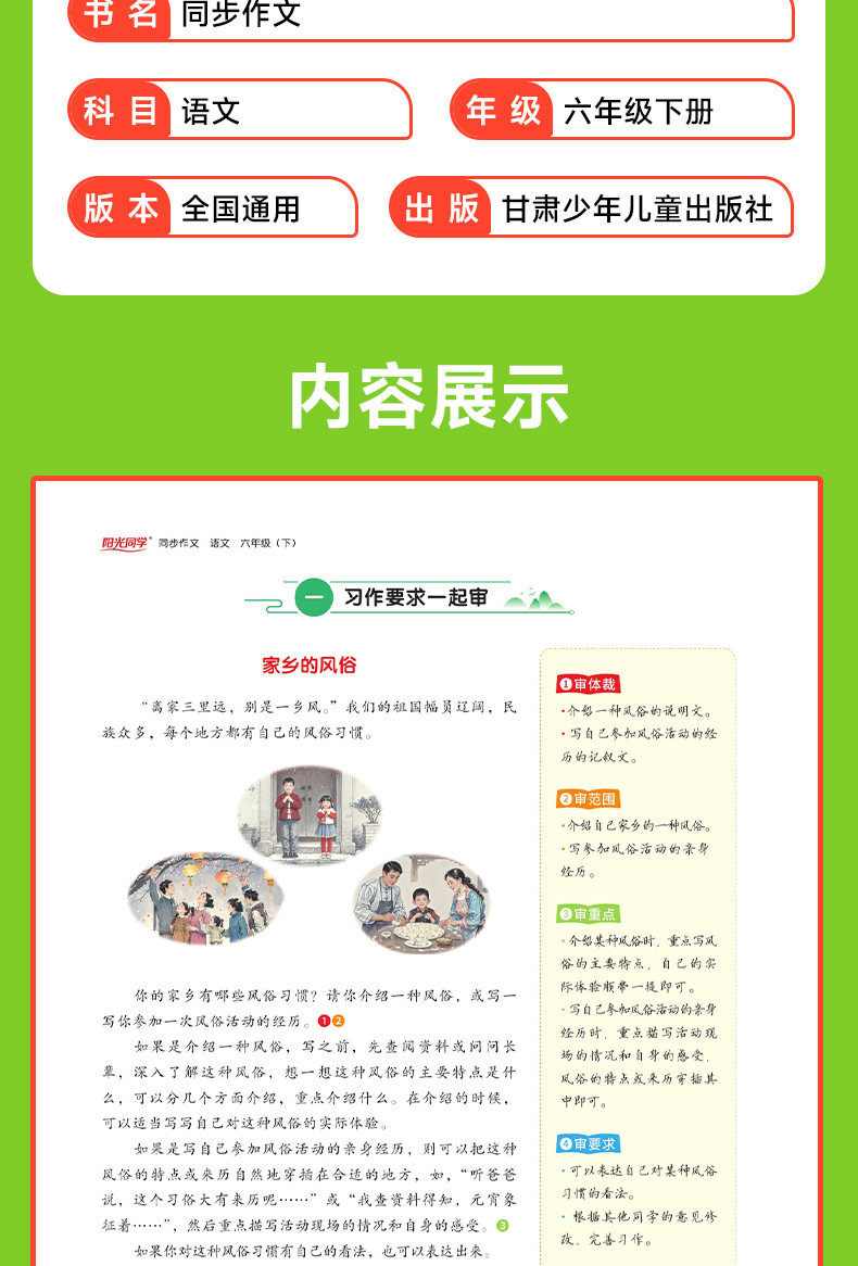 阳光同学同步作文 小学 各年级下册 人教版 语文课本同步 写作技巧 优秀作文范文