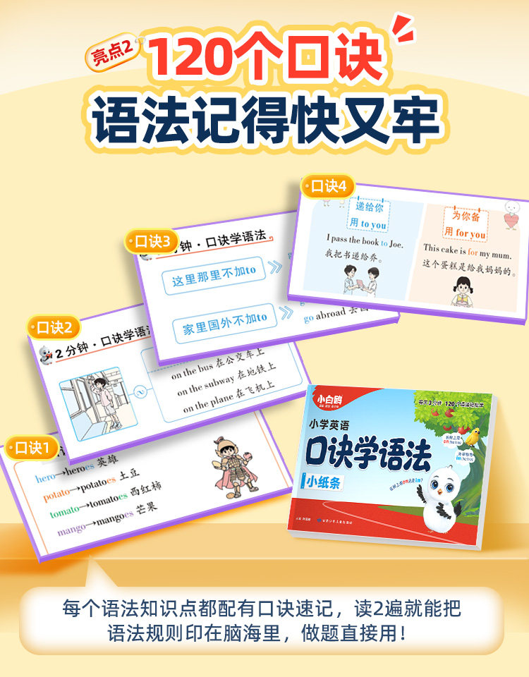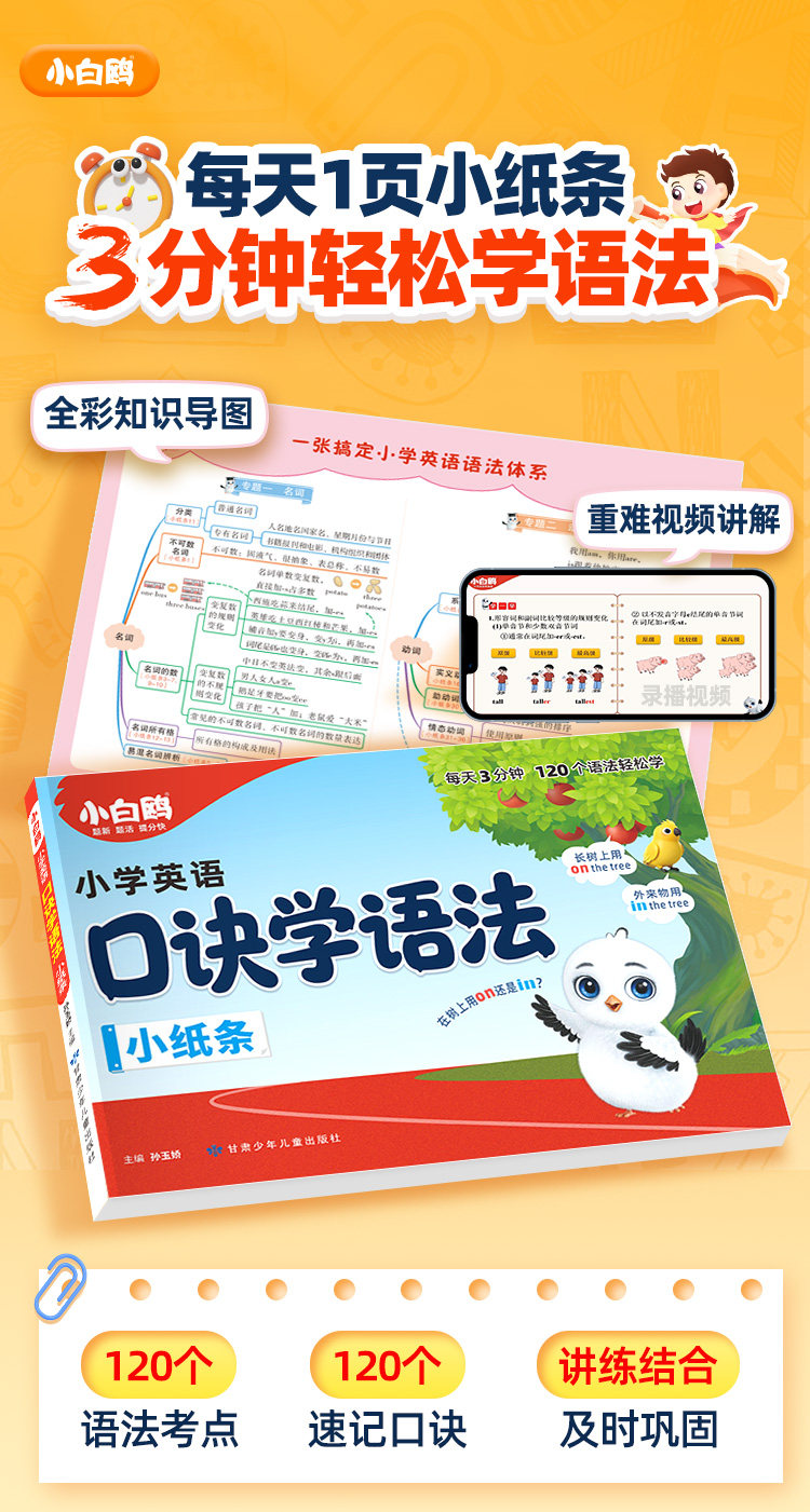 2026万唯小白鸥小学口诀学语法英语语法顺口溜词典作业本学知识漫画小学每日词汇单词记背神器知识视频讲解公式法速记万维教育官方