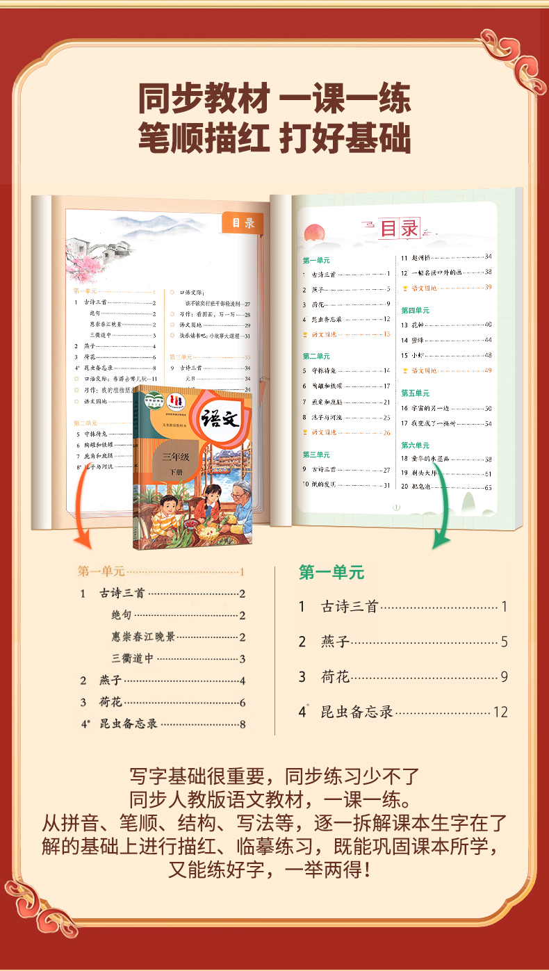 抖音同款荣恒小学生写好中国字正楷临摹儿童硬笔楷书一二年级三四上下册同步练字帖课课练控笔训练五六年级人教版学生英语同步字帖