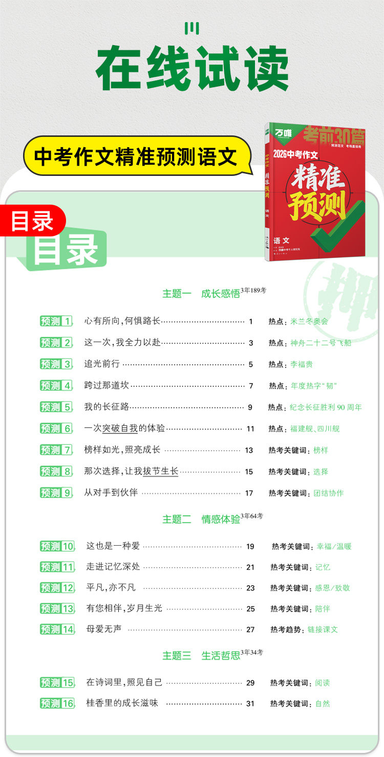 万唯中考、作文预测、万能范文、写作模板、考前冲刺、中考真题