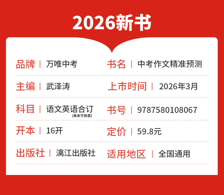 2026万唯中考作文精准预测语文英语万能范文写作模板抢分技巧初中七八九年级考前冲刺中考真题满分作文热点素材万维教育官方旗舰店