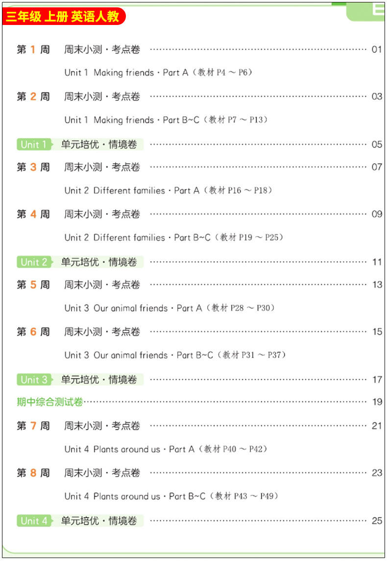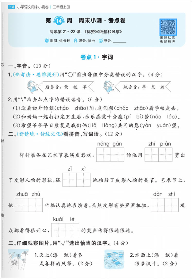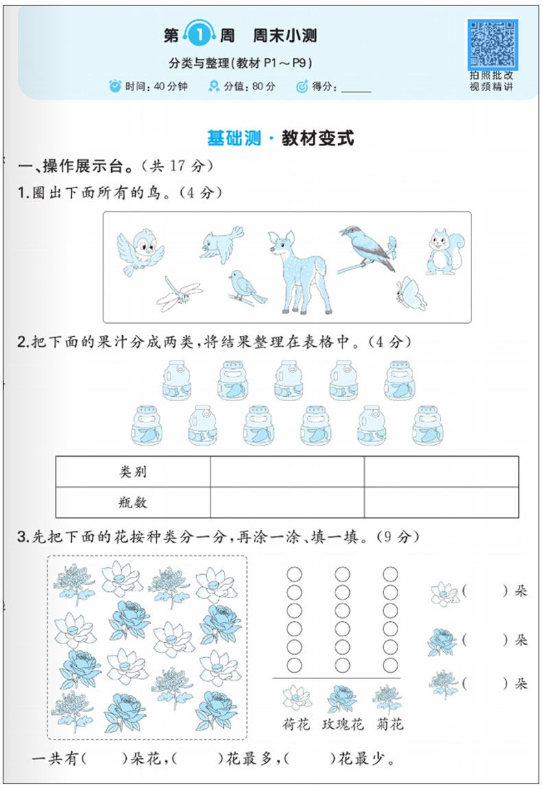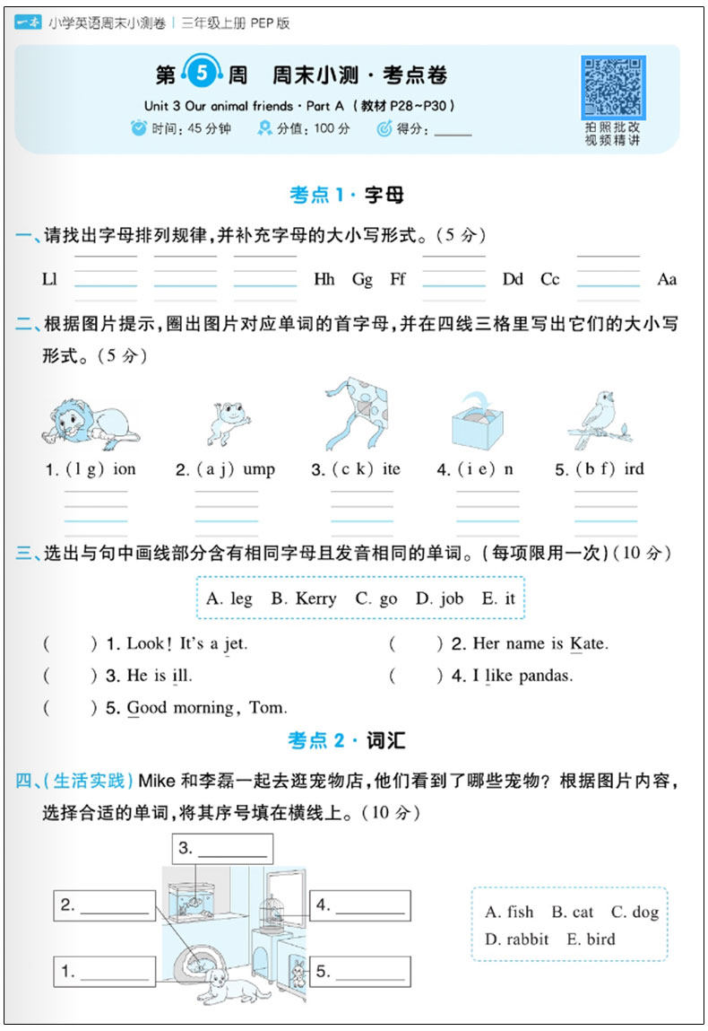 2026春 一本小学 周末小测卷 人教版 考点卷培优卷 同步视频讲解