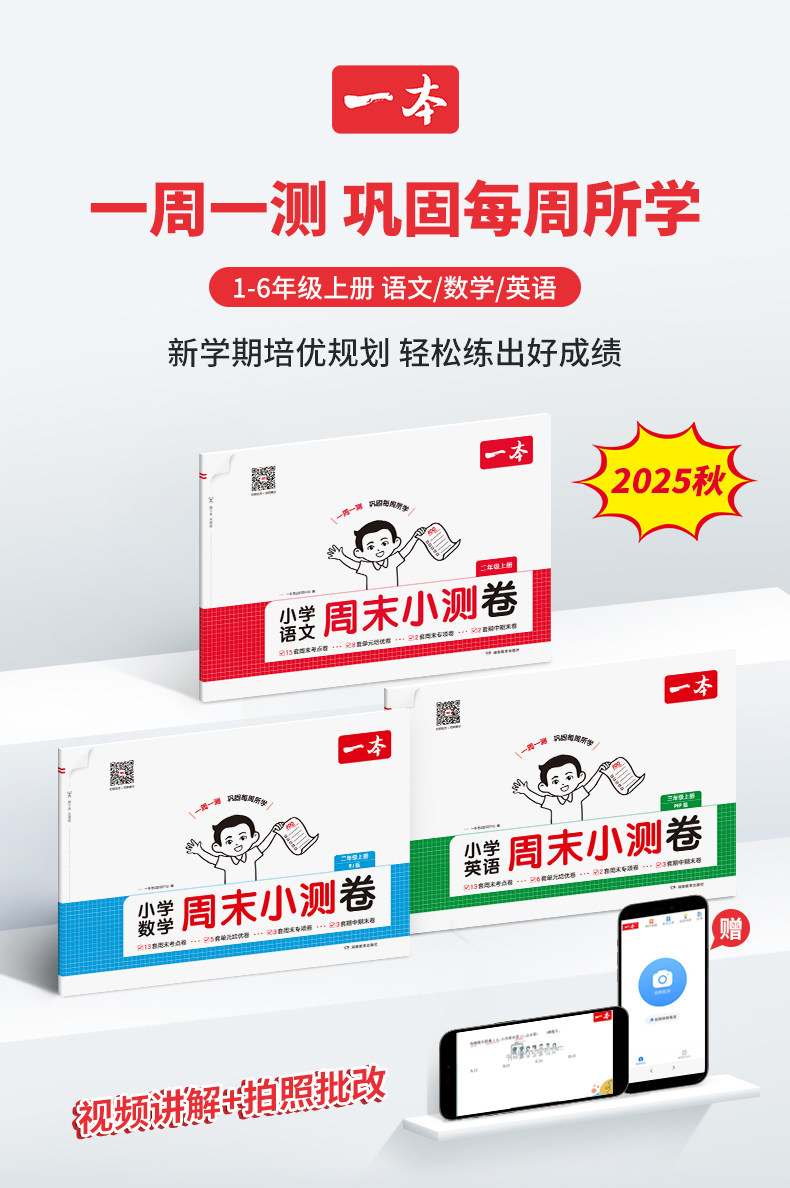 2026春一本小学周末小测卷人教版一二三四五六年级上册语文数学英语人教北师大苏教版考点卷培优卷期中期末卷一周一测同步视频讲解