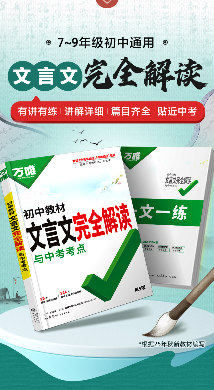 2026万唯中考初中文言文完全解读语文专项训练初一初二初三八九七年级初中必背古诗词和文言文全解一本通阅读练习训练万维旗舰店