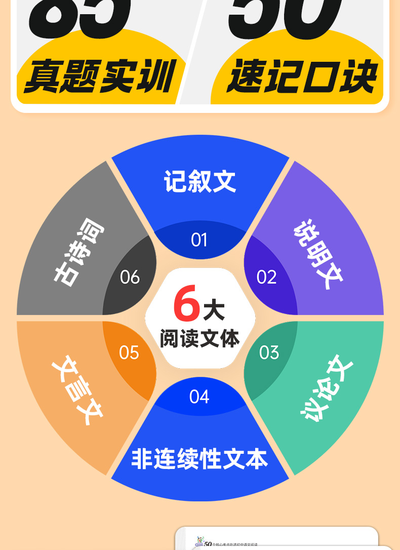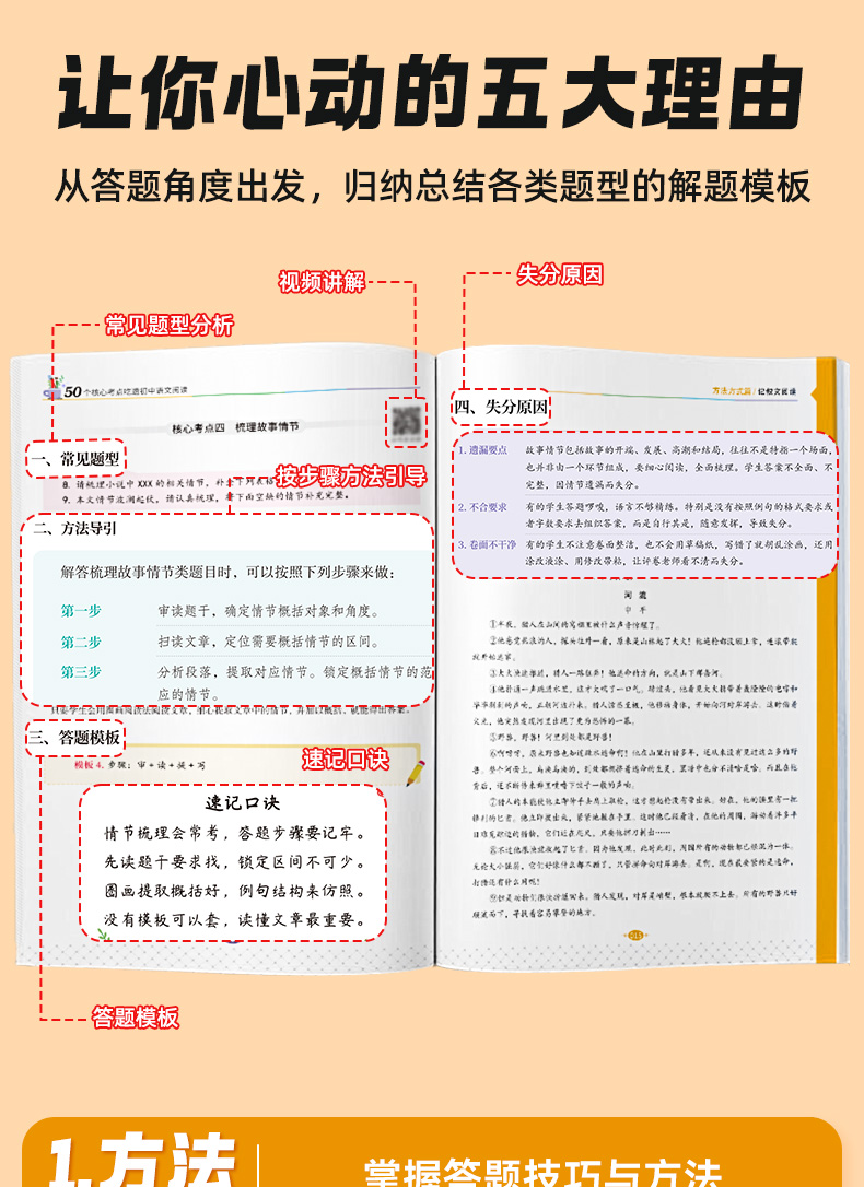 50个核心考点 吃透初中语文阅读 初中 语文阅读理解 专项训练书 阅读答题模板 课外阅读组合训练 答题模板公式法