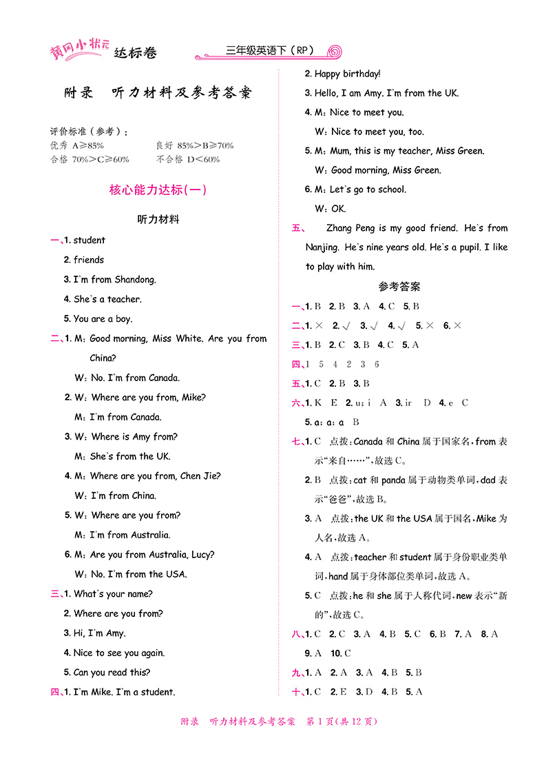 黄冈小状元 达标卷 作业本 试卷 测试卷 黄岗 期末冲刺 总复习 单元检测