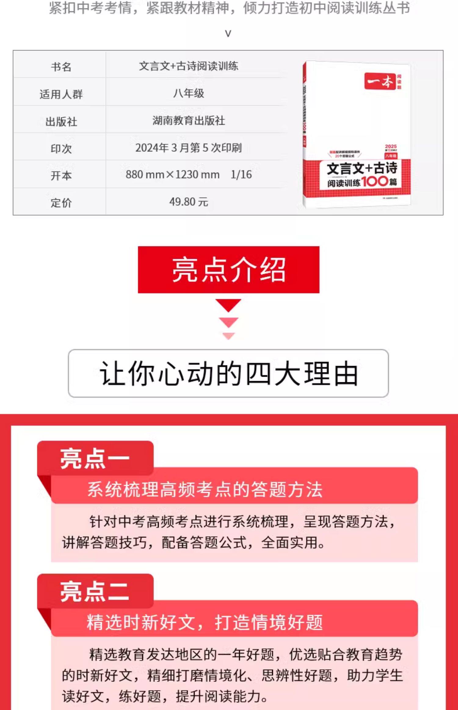 2025 一本初中语文阅读训练五合一 课外阅读理解 必背古诗文